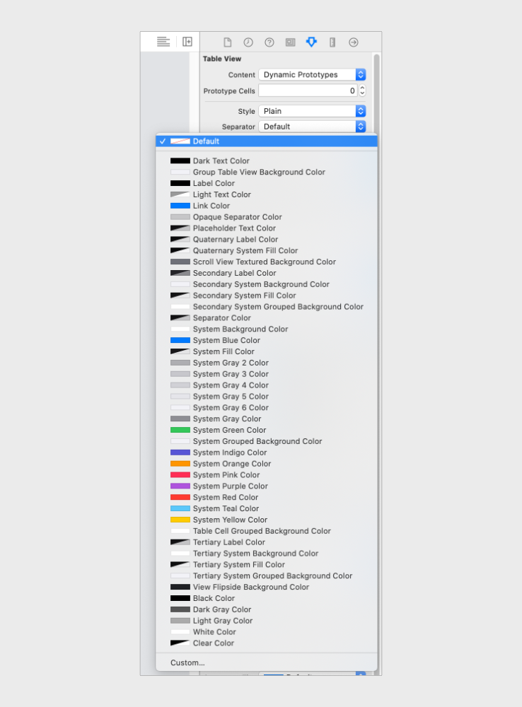 To change the separator color using Interface Builder we need to open the storyboard/xib file. Once storyboard/xib file is open, select the UITableView that you want to change the separator color for.