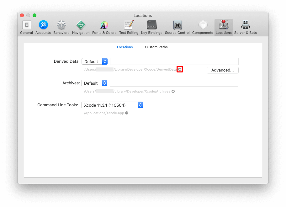 When you click on the arrow, finder will open up with the Derived Data folder highlighted: