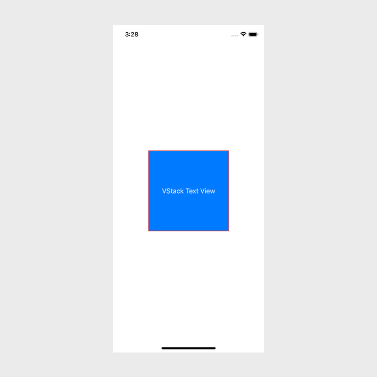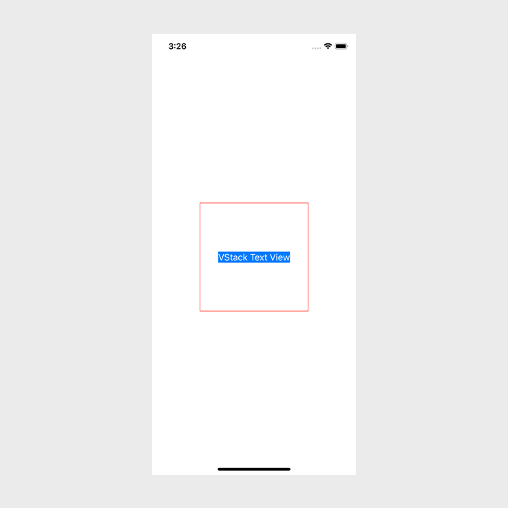 As we can see, we have a VStack where the frame has a width of 200 and a height of 200. We can also see that the Text view is centered and small.