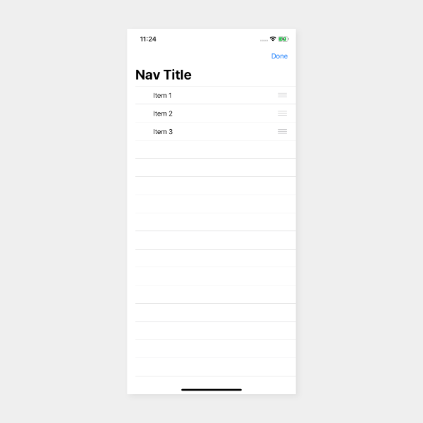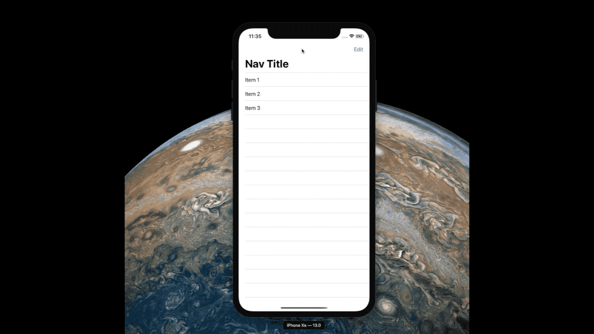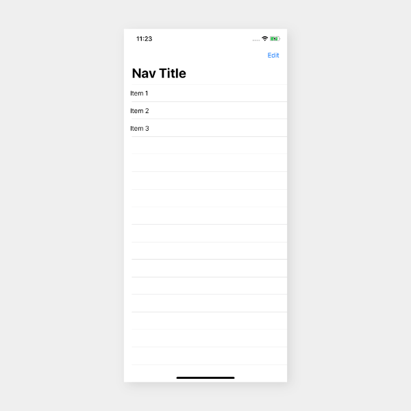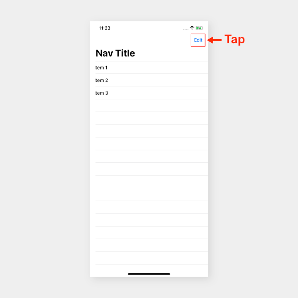 .navigationBarItems(trailing: EditButton())In the above code we have added a list that will display all the items from the listItems array.