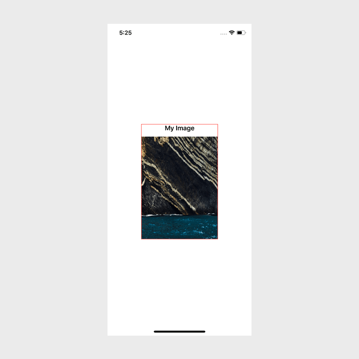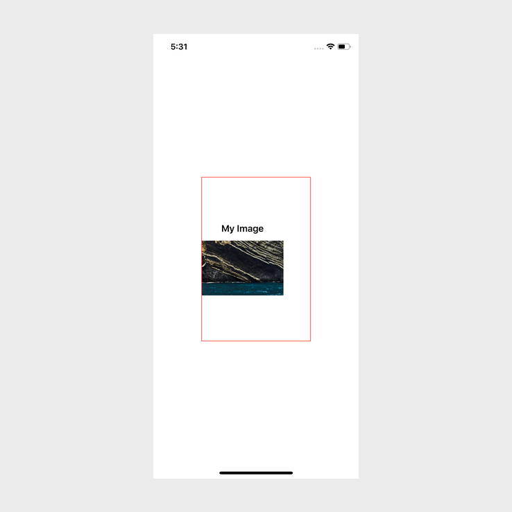 }Ok, so as we can see, this is a very simple layout. I have given the VStack a specific size with a border to more easily showcase the issue and how we can fix it.