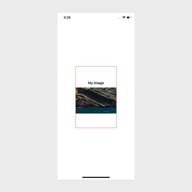 Success! We finally get the image filling up the width but keeping its aspect ratio. Let's see what happens when we use the frame view modifier, my updated code looks like the following: