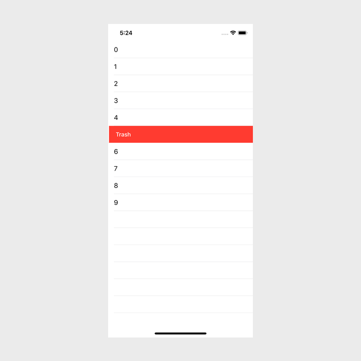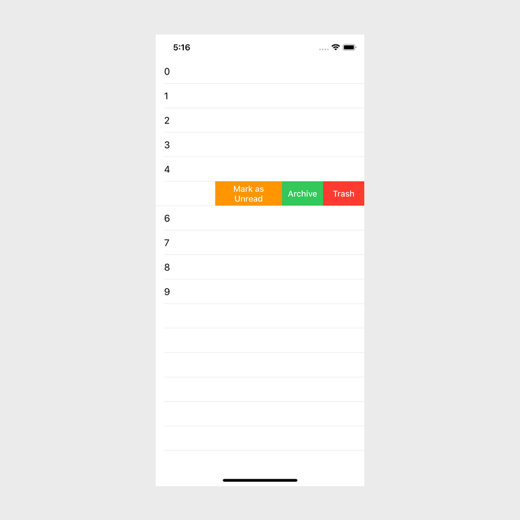 The above image shows what happens if we keep dragging from right to left on a cell that has the .destructive style.