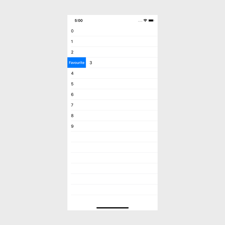 return UISwipeActionsConfiguration(actions: [action])If you build and run the app now and swipe from left to right on a cell, you should see the following: