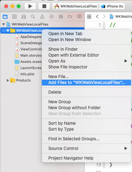 Loading local web files is really easy. We will learn how to do that in this step. For this tutorial I will assume that you have a WKWebView setup already, if not, I will have the full project linked at the end of this tutorial.